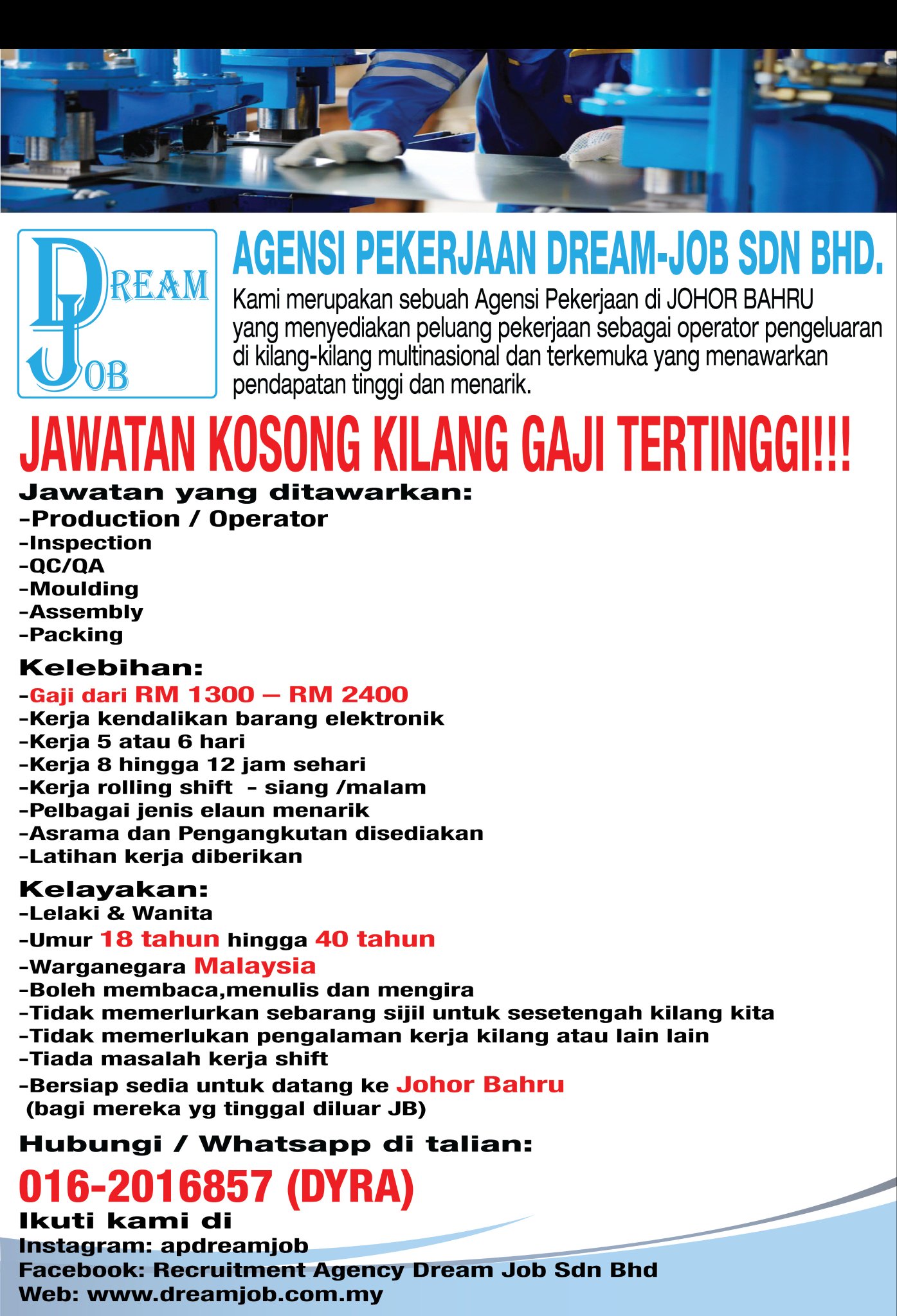 500 Kekosongan Jawatan Kilang Di Agensi Pekerjaan Dream Job Sdn Bhd 2019 Malaysia Kerjaya