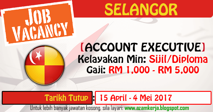 Jawatan Kosong Terkini 2017 Dan 2018 Azam Kerja Jawatan Kosong Account Executive Di Selangor Sijil Diploma Tarikh Tutup 15 April 4 Mei 2017