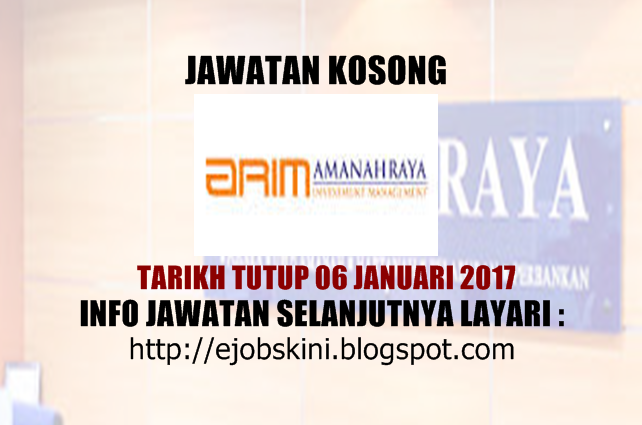 Jawatan Kosong Amanahraya Investment Management Sdn Bhd 06 Januari 2017