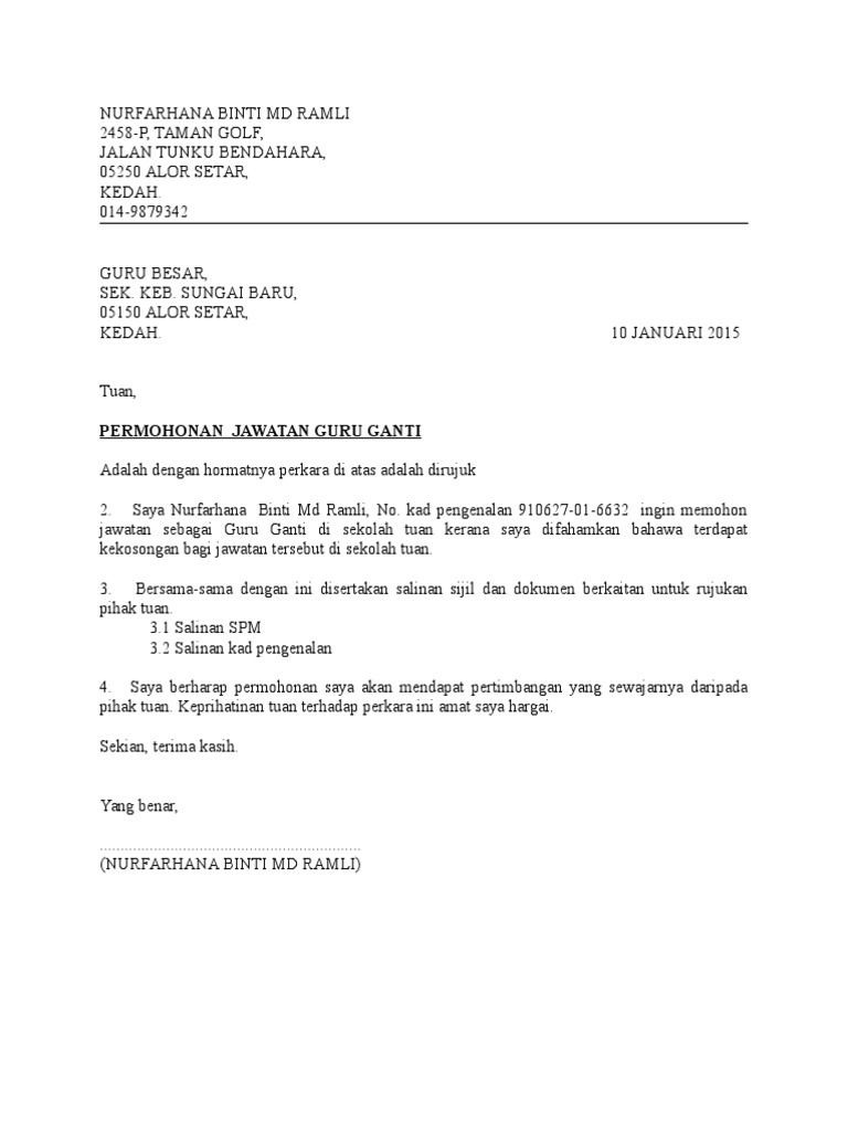 Surat Mohon Guru Ganti