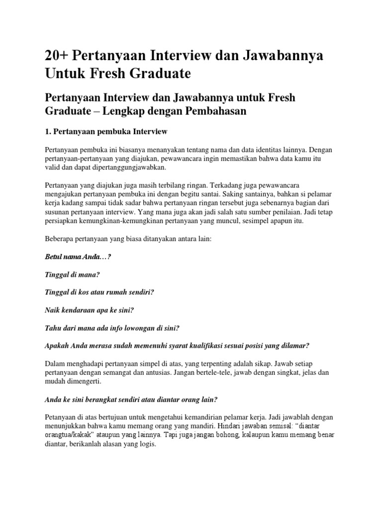 000pertanyaan Interview Dan Jawabannya Untuk Fresh Graduate Docx