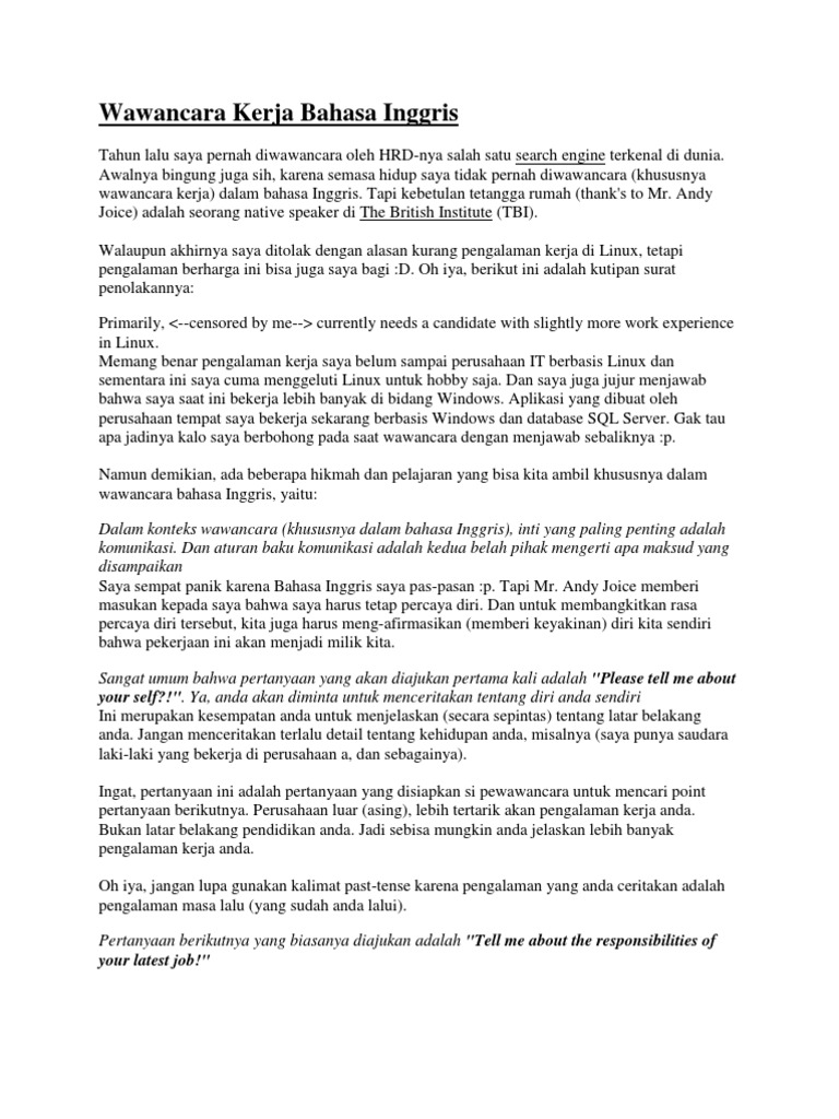 Wawancara Kerja Bahasa Inggris