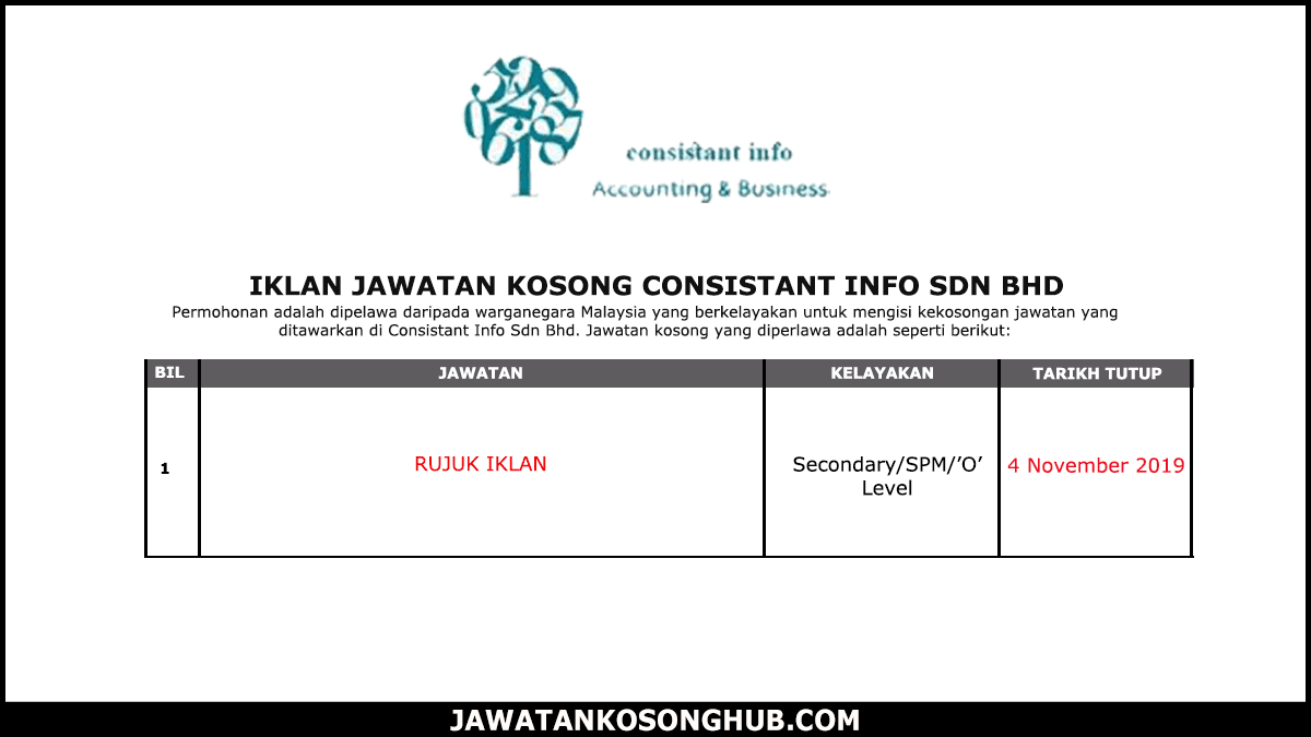 Permohonan Jawatan Kosong Consistant Info Sdn Bhd Portal Kerja Kosong Graduan