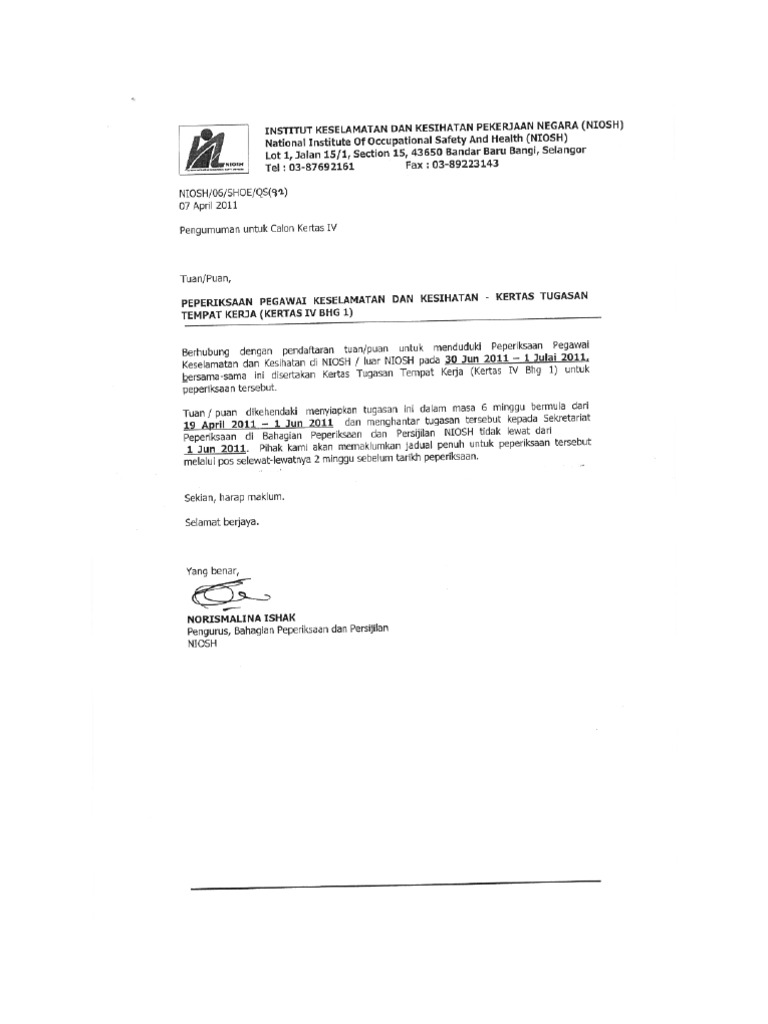 Contoh Cover Letter Bahasa Melayu Untuk Latihan Industri
