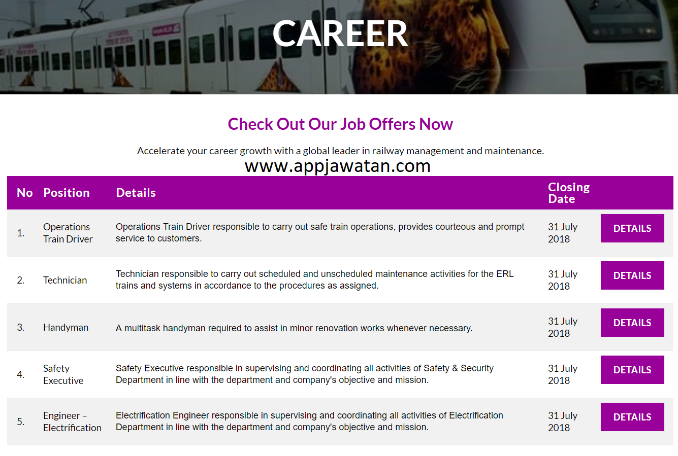 Temuduga Terbuka Pemandu Tren Erl Maintenance Support Klia Ekspress Di Kompleks Rel Udara Bandar Baru Salak Tinggi Sepang 20 Februari 2019 Appkerja Malaysia