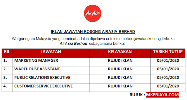 Iklan Pelbagai Kekosongan Jawatan Di Airasia Berhad Dibuka Sesi Januari 2020 Malaysia Kerjaya