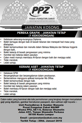 Jawatan Kosong Pusat Pungutan Zakat Ppz Maiwp 20 Januari 2018 Jawatan Kosong Kerajaan Swasta Terkini Malaysia 2020 2021