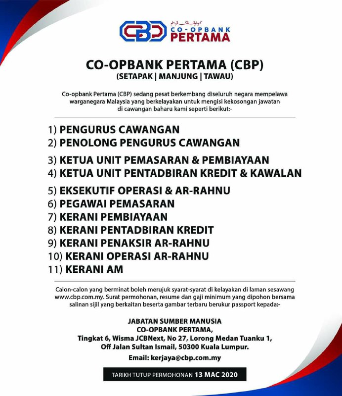 Jawatan Kosong Di Co Opbank Pertama Appjawatan Malaysia