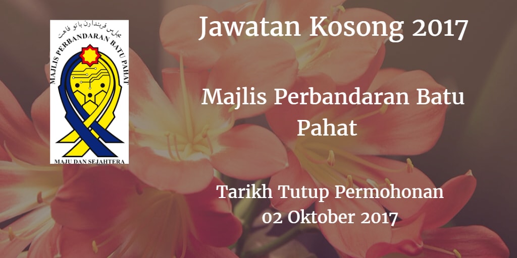 Jawatan Kosong Mpbp Majlis Perbandaran Batu Pahat 02 Oktober 2017 Jawatan Kosong Kerajaan Swasta Terkini Malaysia 2020 2021