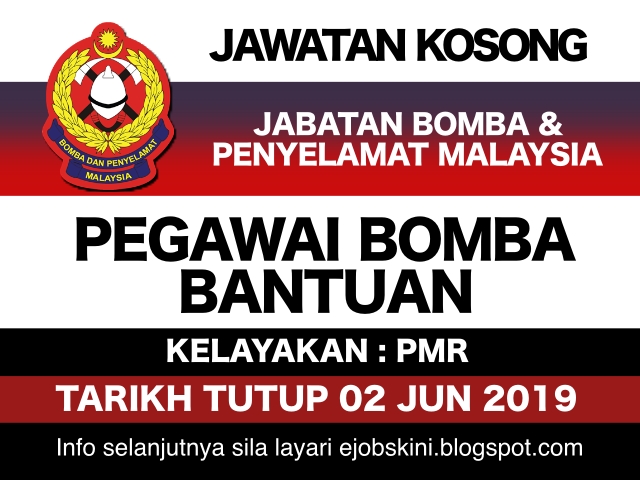 Jawatan Kosong Pegawai Bomba Bantuan Tarikh Tutup 02 Jun 2019