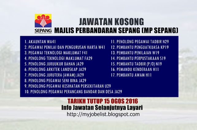 Jawatan kosong di sepang. Penolong pegawai penilai gred w29 2. Untuk memohon sila ikut langkah seperti di bawah. Merangkumi daerah sepang pelancongan sepang perjalanan dan pengangkutan serta panduan perjalanan. Berikut merupakan maklumat iklan kerja kosong yang ditawarkan oleh majikan terlibat.