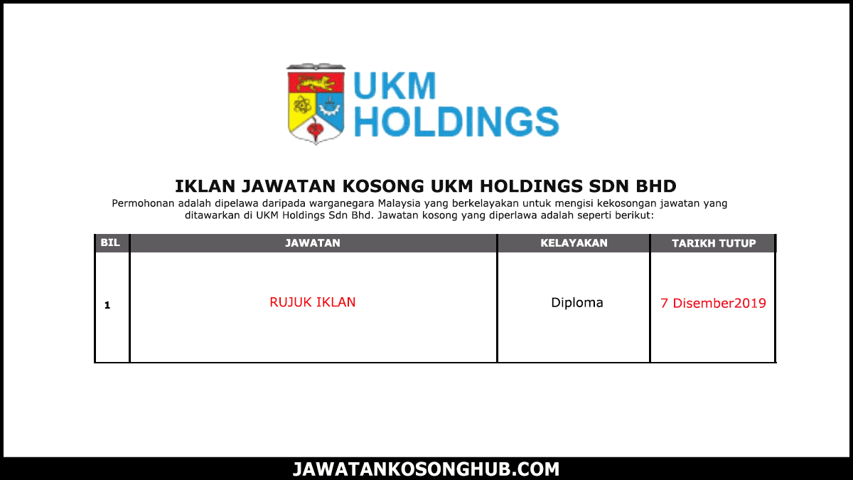 Kekosongan Terkini Di Ukm Holdings Sdn Bhd Jobkini Com Jawatan Kosong Swasta Glc Dan Kerajaan Terkini