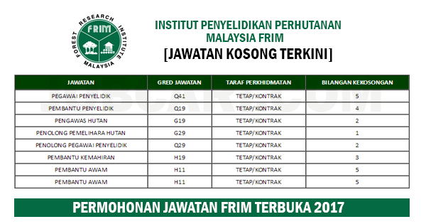 Jawatan Kosong Terbaru Di Institut Penyelidikan Perhutanan Malaysia Frim Jobcari Com Jawatan Kosong Terkini