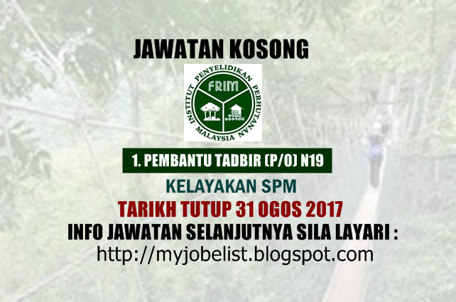 Jawatan Kosong Pembantu Tadbir N19 Di Frim Minima Spm Tetap Berpencen Jobcari Com Jawatan Kosong Terkini