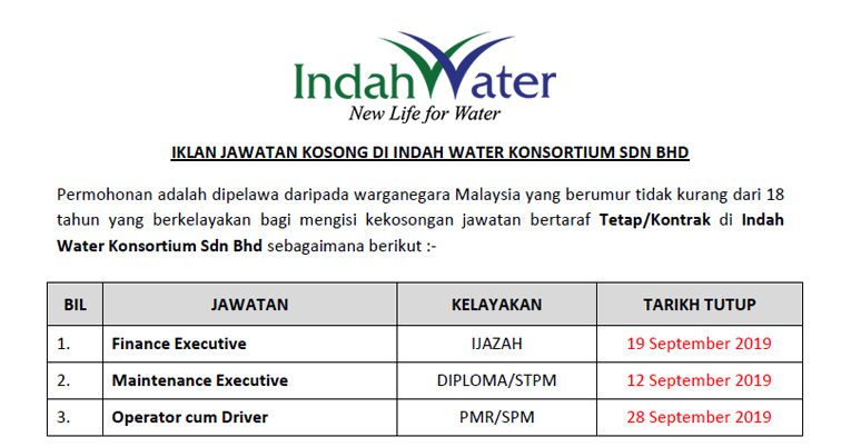 Jawatan Kosong Iwk Indah Water Konsortium 06 Julai 2018 Jawatan Kosong Kerajaan Swasta Terkini Malaysia 2020 2021
