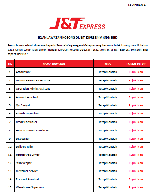 Jawatan Kosong Terkini J T Express Pelbagai Kekosongan Jawatan Baru Pelbagai Negeri Kerja Kosong Kerajaan Swasta