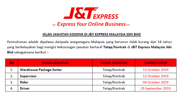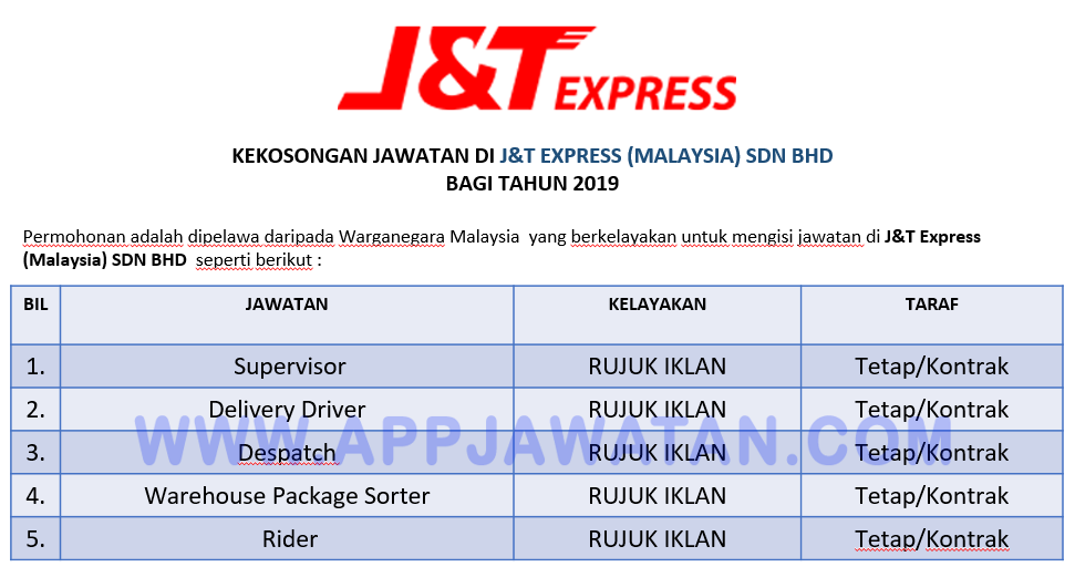Jawatan Kosong Terkini Di J T Express Malaysia Sdn Bhd Appjawatan Malaysia