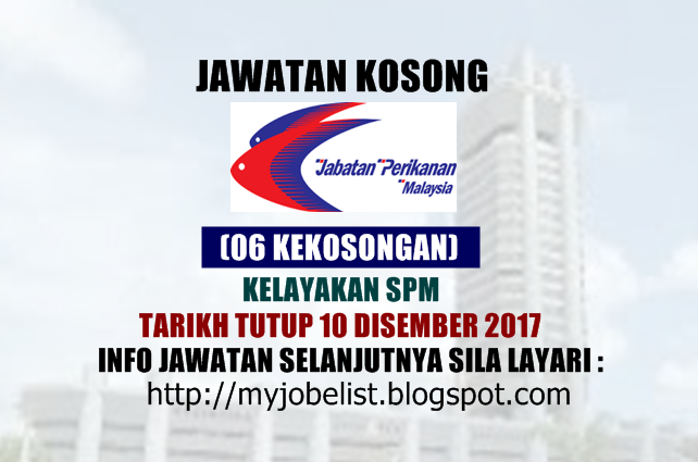 Jawatan kosong jabatan perikanan 2017. Jawatan kosong maktab koperasi malaysia berhad. Monday december 4 2017. Jawatan kosong terkini kerajaan 2017 jabatan perikanan malaysia. Jawatan kosong kerajaan 2017.