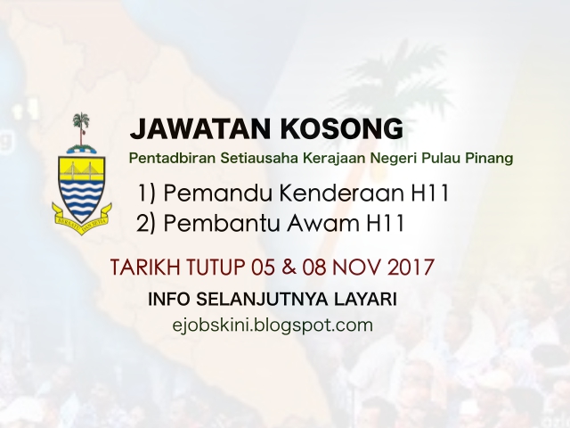 Jawatan Kosong Kerajaan Negeri Pulau Pinang 08 November 2017 Jawatan Kosong Kerajaan Swasta Terkini Malaysia 2020 2021