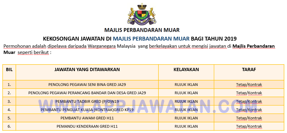 Jawatan Kosong Di Majlis Perbandaran Muar Jobcari Com Jawatan Kosong Terkini