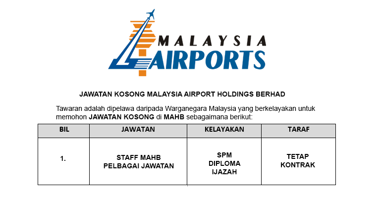 Jawatan Kosong Malaysia Airport Mahb Kerja Kosong Kerajaan
