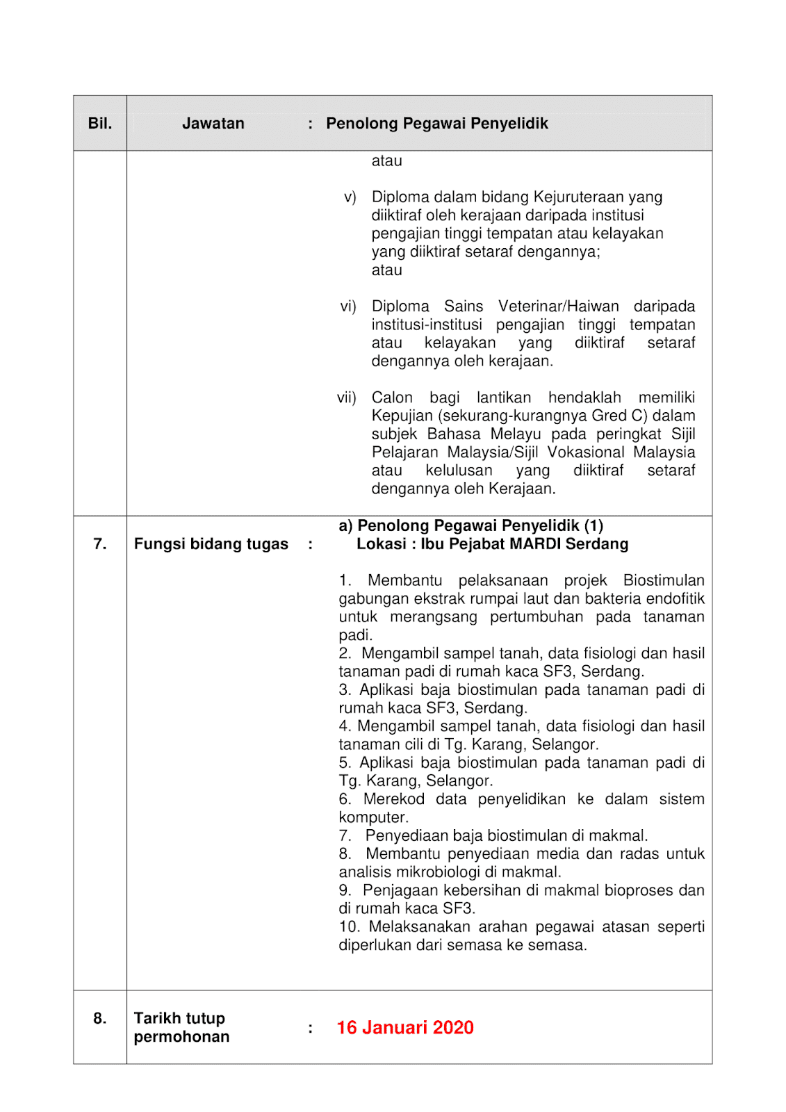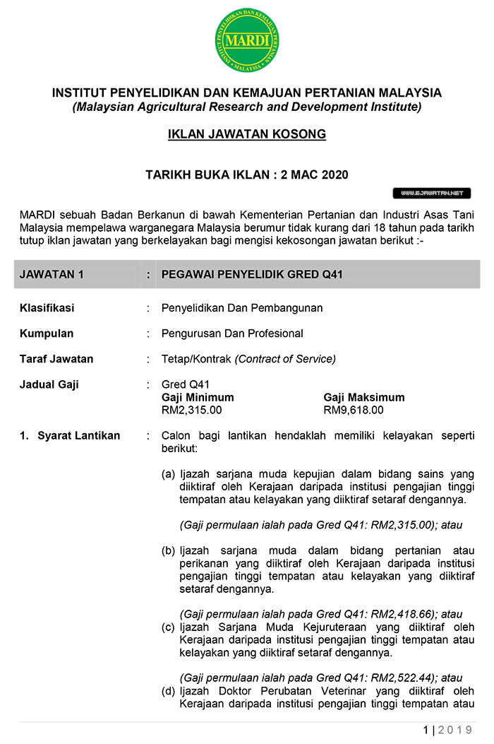 Jawatan Kosong Di Institut Penyelidikan Dan Kemajuan Pertanian Malaysia Mardi Tarikh Tutup 16 Januari 2020 Jawatan Kosong Kerajaan 2020 Terkini