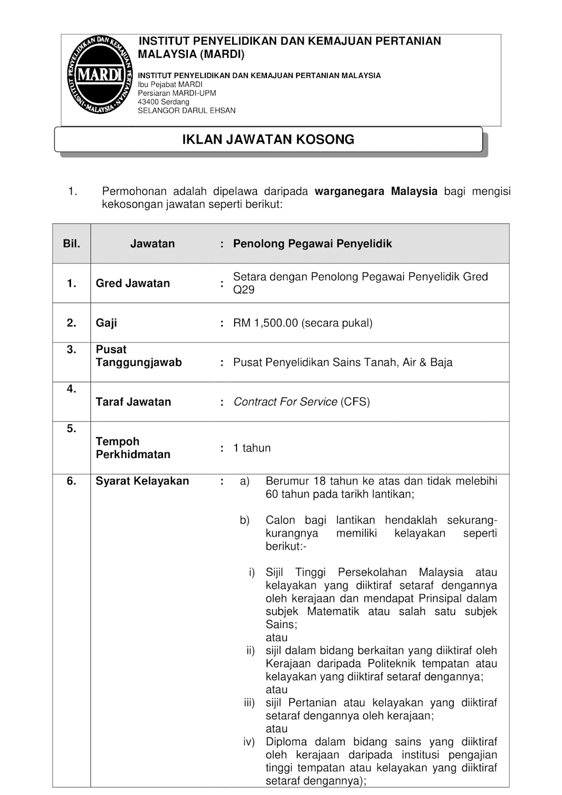 Jawatan Kosong Di Institut Penyelidikan Dan Kemajuan Pertanian Malaysia Mardi Jobcari Com Jawatan Kosong Terkini