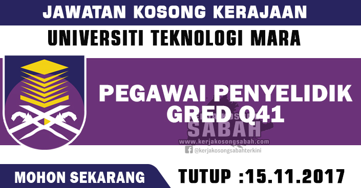 Jawatan Kosong Kerajaan Pegawai Penyelidik Gred Q41 Uitm Jawatan Kosong Terkini Negeri Sabah