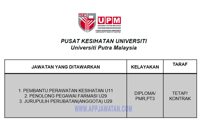 Jawatan Kosong Di Pusat Kesihatan Universiti Upm Pkuupm Appjawatan Malaysia