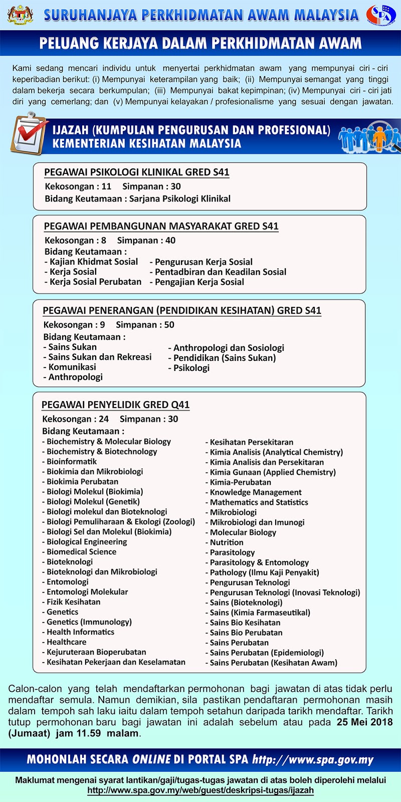 Jawatan Kosong Terkini Di Kementerian Kesihatan Malaysia Kkm 25 Mei 2018 Appjawatan Malaysia