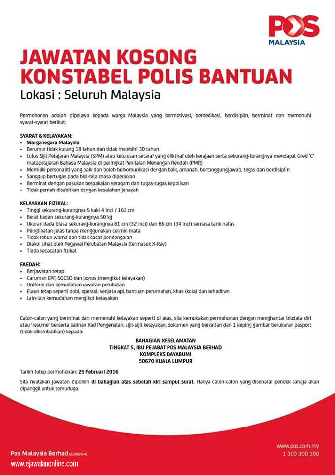 Jawatan Kosong Terkini Di Pos Malaysia Berhad Min Spm Kerani Posmen Kurier Jobcari Com Jawatan Kosong Terkini