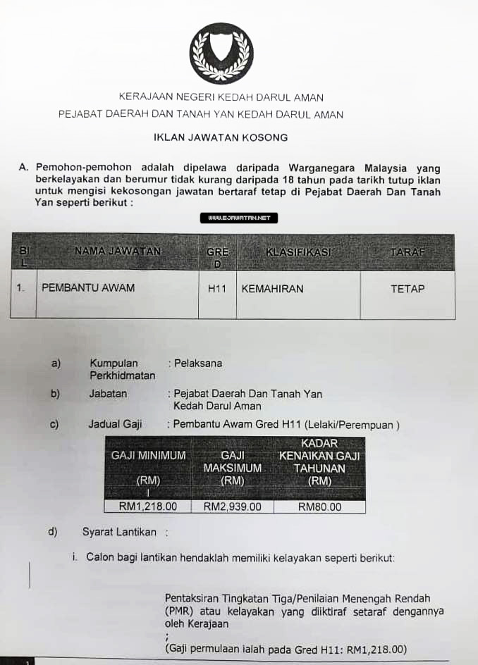 Jawatan Kosong Terkini Pejabat Daerah Dan Tanah Yan Kedah Darul Aman Pembantu Awam Kerja Kosong Kerajaan Swasta