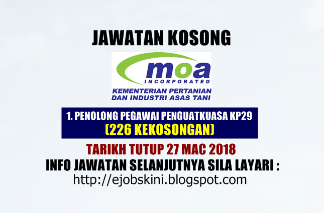 Jawatan Kosong Kementerian Pertanian Dan Industri Asas Tani Moa 27 Mac 2017