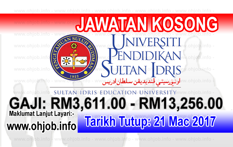 Jawatan Kosong Upsi Universiti Pendidikan Sultan Idris 21 Mac 2017 Jawatan Kosong Kerajaan Swasta Terkini Malaysia 2020 2021