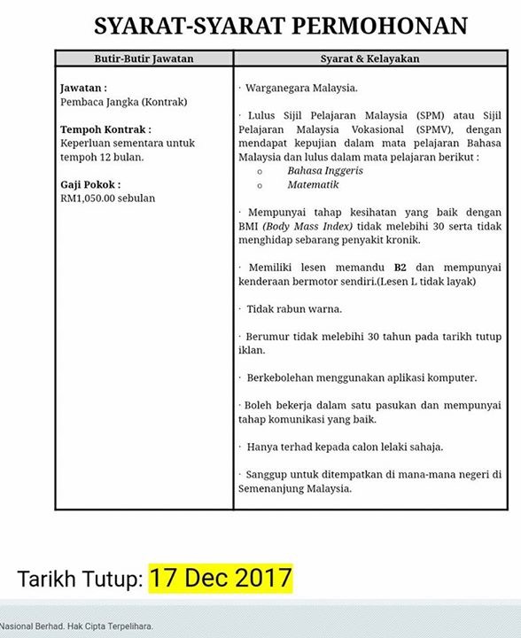 Jawatan Kosong Tnb Pembaca Meter 2017