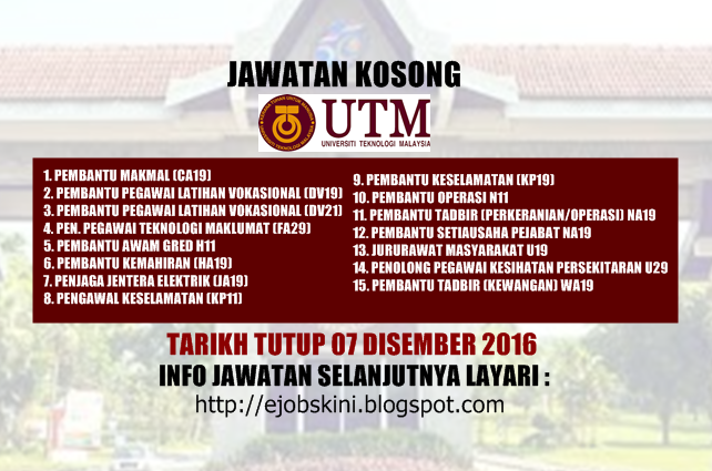Jawatan Kosong Universiti Teknologi Malaysia Utm 07 Disember 2016 Jawatan Kosong Kerajaan Swasta Terkini Malaysia 2020 2021