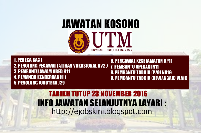 Jawatan Kosong Universiti Teknologi Malaysia Utm 23 November 2016