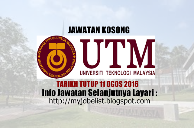 Jawatan Kosong Universiti Teknologi Malaysia Utm 11 Ogos 2016