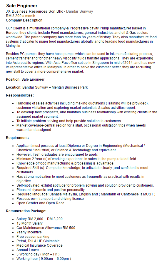 Oil Gas Vacancies Sale Engineer Jx Business Resources Sdn Bhd Bandar Sunway