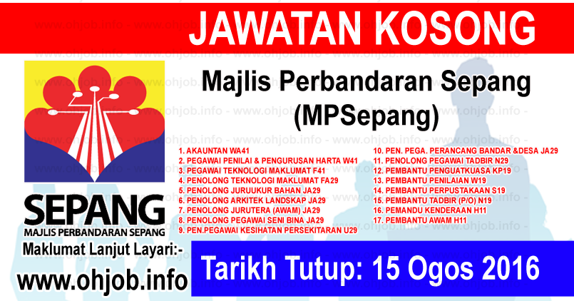 Jawatan Kosong Terbaru Di Majlis Perbandaran Sepang 50 Kekosongan 15 Ogos 2016 Jobcari Com Jawatan Kosong Terkini