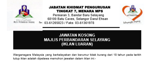 Jawatan Kosong Di Majlis Perbandaran Selayang