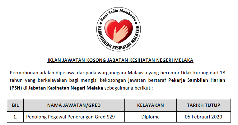 Jawatan Kosong Di Jabatan Kesihatan Negeri Melaka 14 February 2017 Kerja Kosong 2020 Jawatan Kosong Kerajaan 2020
