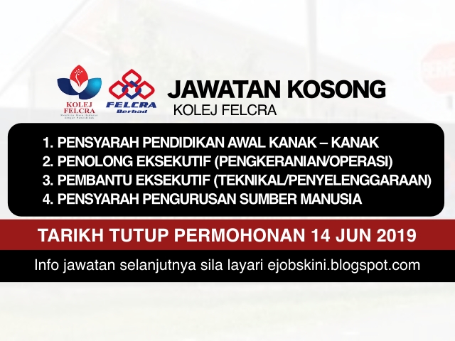 Jawatan Kosong Terkini Kolej Felcra Pembantu Eksekutif Penolong Eksekutif Pensyarah Pendidikan Awal Kanak Kanak Kerja Kosong Kerajaan Swasta