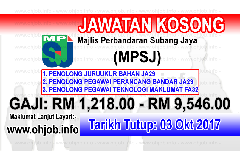 Jawatan Kosong Mpsj Majlis Perbandaran Subang Jaya 03 Oktober 2017 Jawatan Kosong Kerajaan Swasta Terkini Malaysia 2020 2021