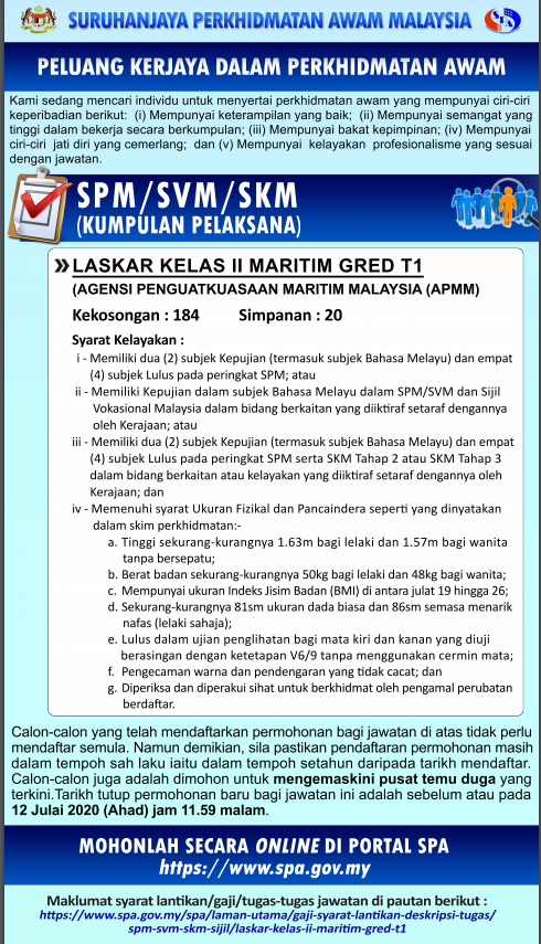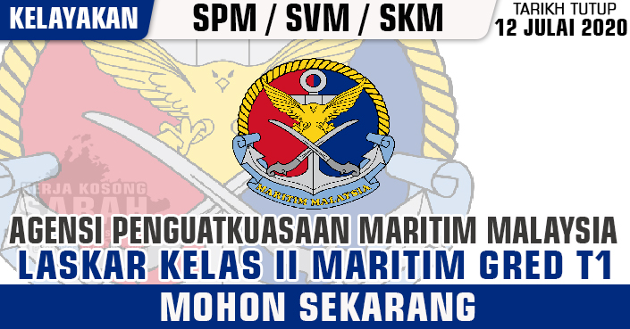 Jawatan Kosong On Twitter Agensi Penguatkuasaan Maritim Malaysia Apmm Jawatan Laskar Kelas Ii Maritim Gred T1 Kekosongan 184 Simpanan 20 Iklan Penuh Https T Co Srtssdkndz Kerjakosong
