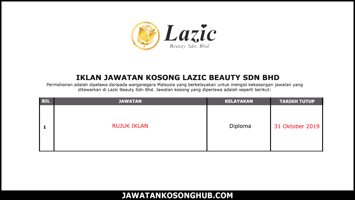Kerja full time dalam syarikat lazic beauty sdn bhd. Lazic beauty sdn bhd open recruitment and need new staff urgently. 326137 m nouvelle beauty centre sdn. Tawaran gaji hingga rm3 000 sebulan.