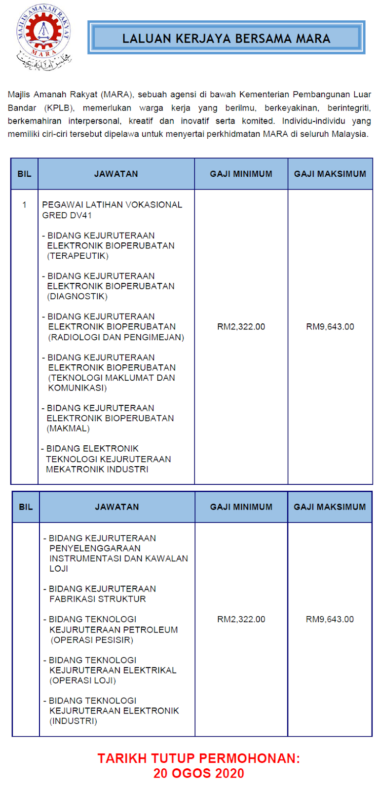 Jawatan Kosong Di Majlis Amanah Rakyat Mara 26 Januari 2020 Jawatan Kosong Kerajaan Swasta Terkini Malaysia 2020 2021