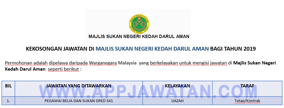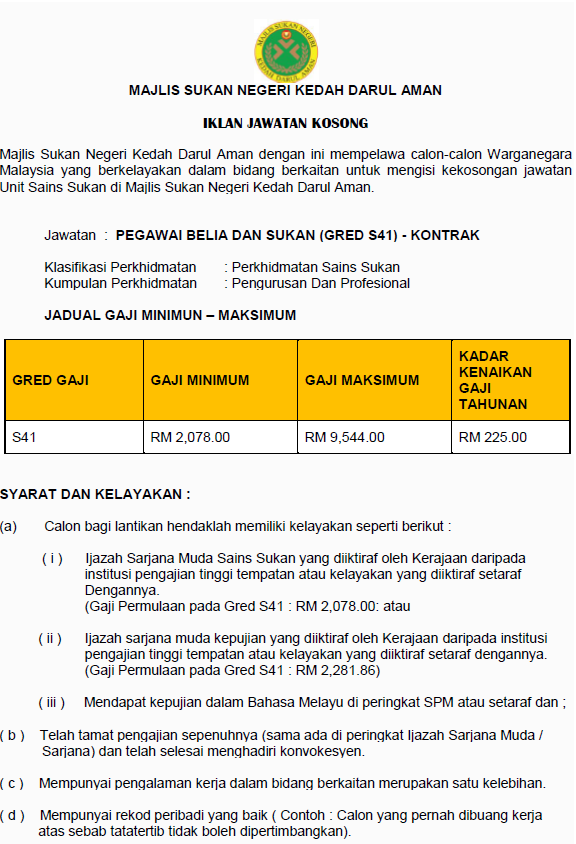 Jawatan Kosong Terkini Di Majlis Sukan Negeri Kedah Darul Aman Appjawatan Malaysia