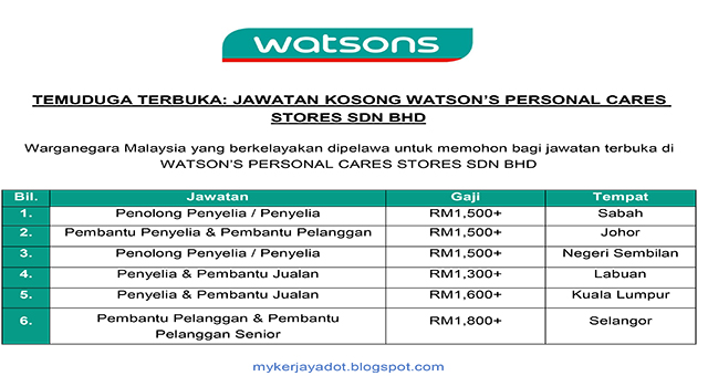 Terkini Temuduga Terbuka Watson S Personal Cares Stores Sdn Bhd Terbuka Kepada Seluruh Malaysia Sesi Pengambilan Oktober 2019 Mykerjayadot