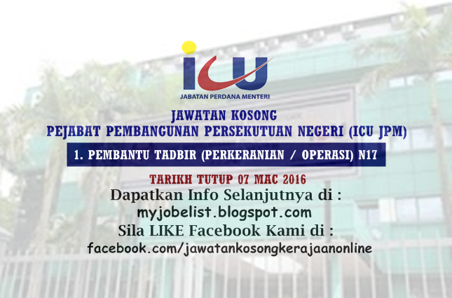 Jawatan Kosong Pejabat Pembangunan Persekutuan Negeri Icu Jpm 07 Mac 2016